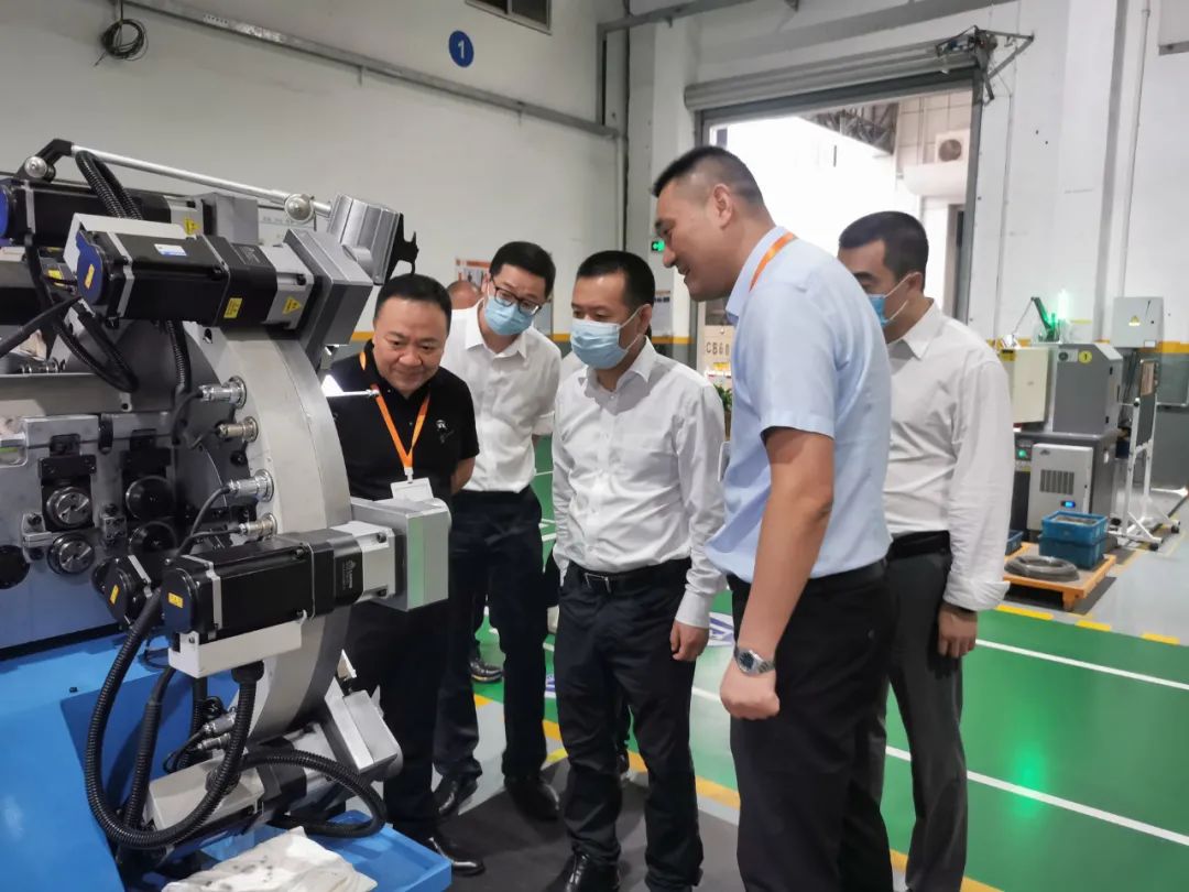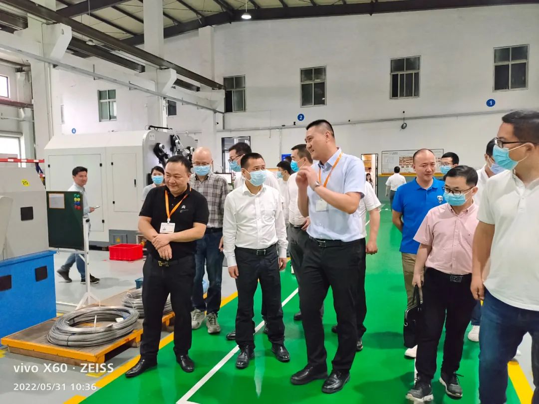 隨后,一行人來到車間,吳縣長對我司新引進的智能數控彈簧機很感興趣,詳細地了解了該機器的功能,并建議我們引進更多的高端智能設備,以促進企業智能自動化流水線的搭建,使生產效率更高,質量更穩定,效益更好。